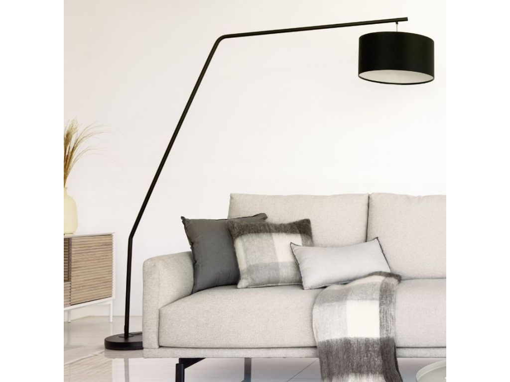 Podívám seČerná kovová stojací lampa s bavlněným stínidlem Kave Home Ciana 221,5 cm