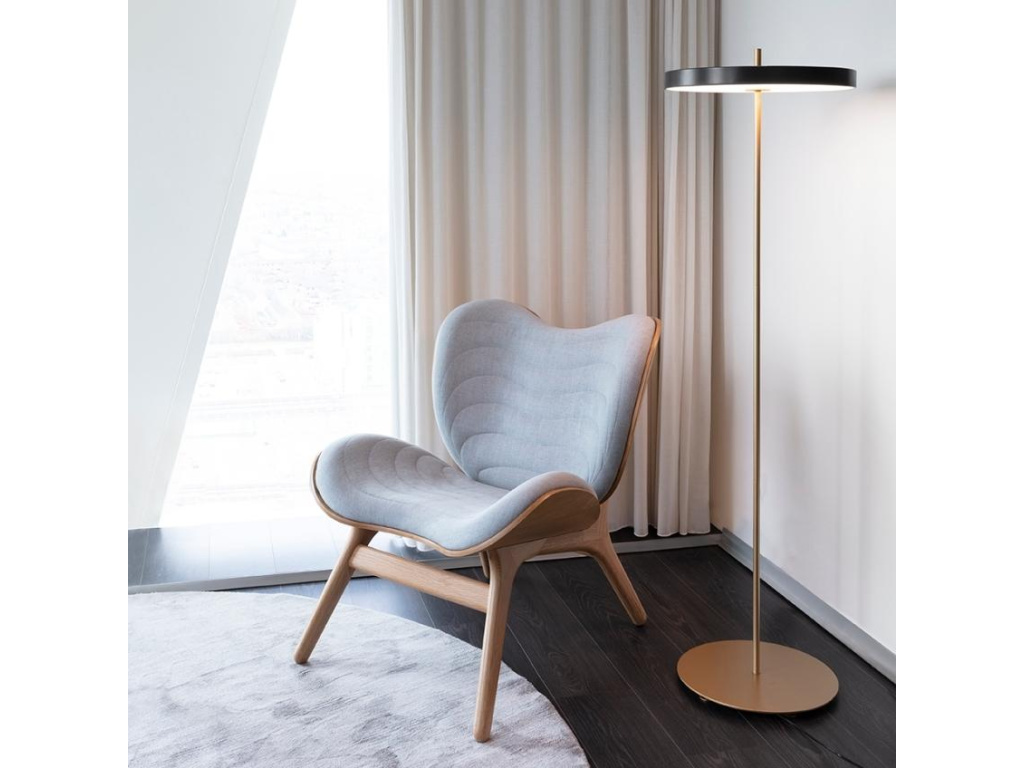 Stojací lampa Umage Asteria se zrodila na pomezí designu, technologie a řemeslného zpracování. Obsahuje vestavěnou LED technologii s tak minimalistickým tvarem, že nikdy nevyjde z módy. Panel LED je stmívatelný a má bílý difuzor zajišťující měkké osvětlení okolního prostoru. Mosazná kovová podstava, procházející stínidlem jako svislá osa, umocňuje jemný výraz. Otočením vrchní částí lampu zapnete či vypnete. Lampu doporučujeme kombinovat i s ostatními světly z řady Asteria.