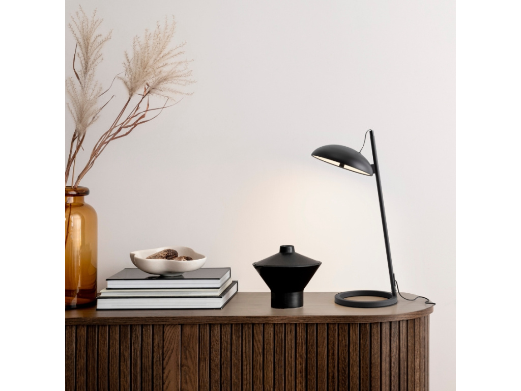 Stolní LED lampa Flute od značky Nova Luce představuje funkční design, minimalismus a eleganci. Tento designový funkční doplněk spolehlivě osvítí váš obývací pokoj, ložnici i oblíbený čtecí koutek. Dokonale kulaté stínidlo vytvoří příjemný úhel světla a navodí útulnou atmosféru v jakékoliv místnosti. Kombinace černé barvy spolu s kovovým materiálem dokonale doplní interiér laděn do industriálního či minimalistického stylu.