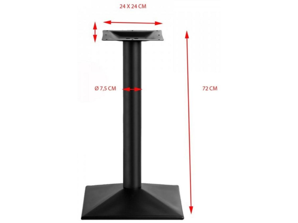 Vysoce kvalitní černá celokovová stolová podnož vhodná jako podstavec pro jídelní stoly, bistro stolečky či restaurační a kavárenské stoly. Stolová podnož se skládá z montážní plotny čtvercového tvaru pro upevnění stolové desky, stolové nohy a těžké základny, která zaručuje vysokou stabilitu. Díky spodní pogumované části stojanu nehrozí poškrábání podlahy ani podkluzování stolku.