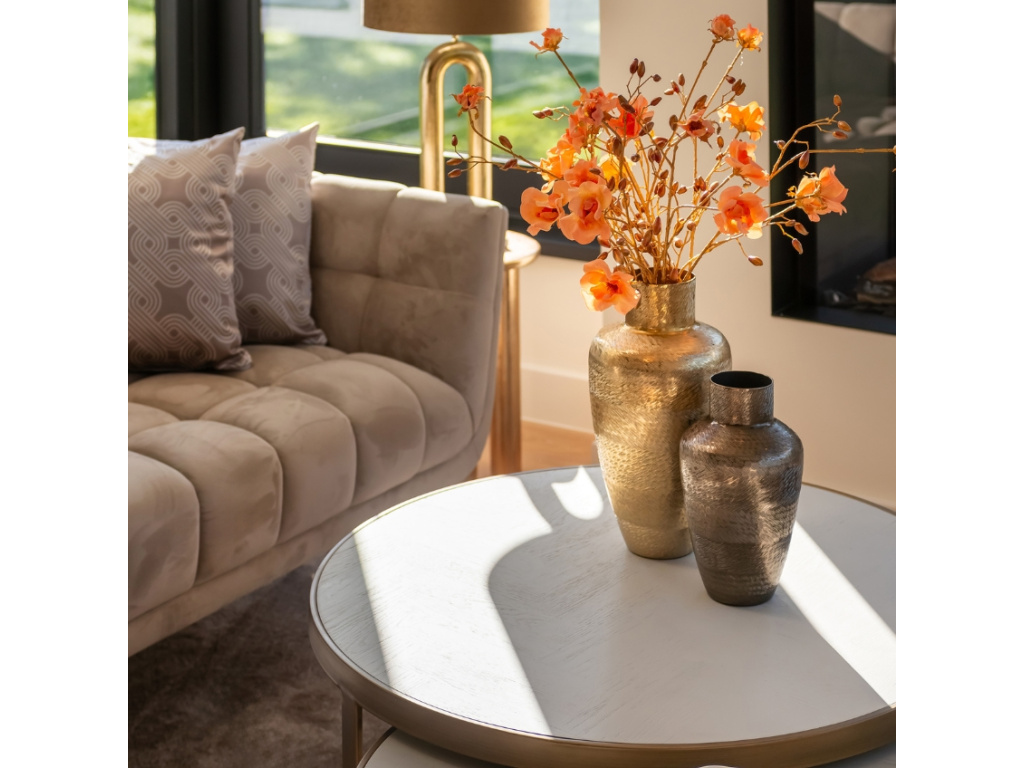Stylová váza Joah je designovým prvkem do glamour či minimalistických interiérů. Kovová váza skvěle vynikne s barevnými květinami, ale i s tlumenějšími travinami či peřím. Lesklá černá barva se skvěle hodí i do barevnějších interiérů – třeba na komodu, jídelní stůl nebo na odkládací stolek vedle křesla. Vázu Joah nabízíme i v další barvě – pospolu budou vypadat ještě lépe!