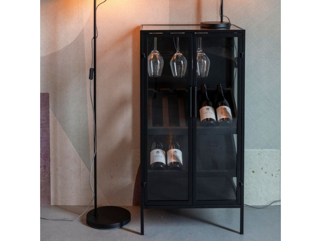 Vinotéka ROB značky White Label Living zaujme originální kombinací použitých materiálů. Lakovaný kov, sklo a masivní jedlové dřevo se spojili v opravdu zajímavý designový kousek. Za velkými prosklenými dvířkami najdete dvě jedlové police s deseti přihrádkami na lahve a navíc také kovový závěsný systém na skleničky. Vinotéku ROB si na první pohled zamiluje každý milovník vína.