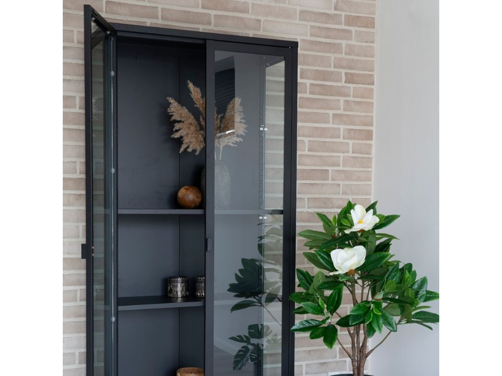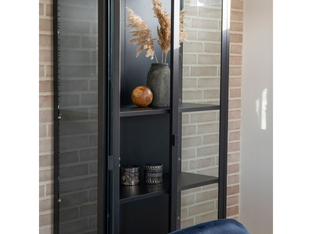 Vitrína Bristana s kovovou konstrukcí disponuje prosklenými dveřmi. Její boční stěny jsou také tvořeny skleněnými výplněmi. Všechny vystavené dekorace, trofeje a fotky v ní dokonale vyniknou. Díky nadčasovému černému zbarvení vitrína skvěle zapadne téměř do každého interiéru. K dispozici je ve dvou velikostech.