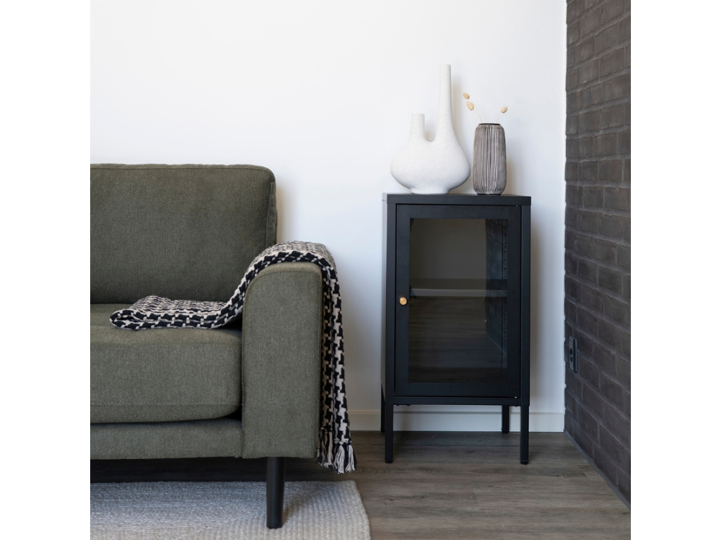 Dobby se stane elegantním a nanejvýš praktickým společníkem v obývacím pokoji, kuchyni či pracovně. Za skleněnými dvířky najdete dvě police, které nabízí dostatek úložného prostoru pro přehledné uložení a vystavení knih, časopisů a dekorativních předmětů na dosah ruky. Konstrukce z oceli zajišťuje dlouhou životnost a také snadnou údržbu. Vitrína má klasický design, který ale doplní celou řadu interiérů.