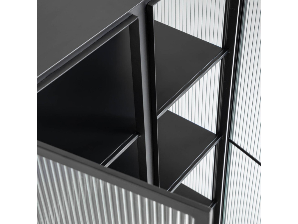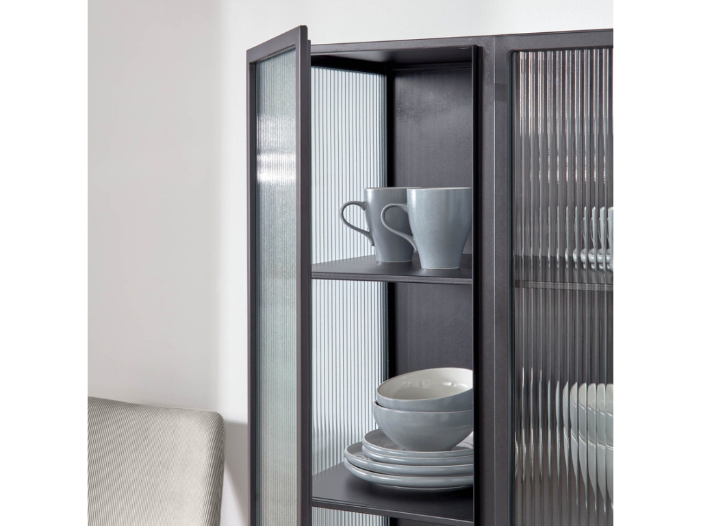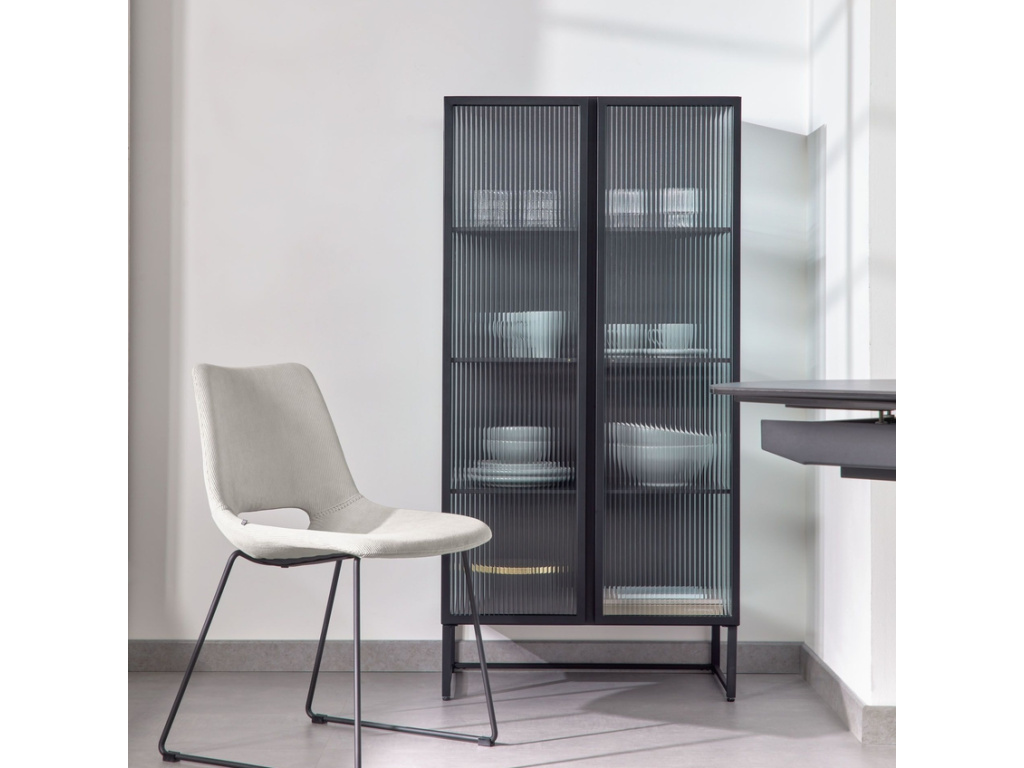 Elegantní vitrína Kave Home Trixie ukazuje krásu a sílu ve svém celokovovém provedení. Čtyři police zajistí prostorné úložiště pro váš inventář. Svou dokonalost ukazuje především díky proskleným vroubkovaným bočním stěnám a dveřím, které vitríně dodají na originalitě a osobitosti. Vitrína se hodí nejen do klasicky orientovaných interiérů.