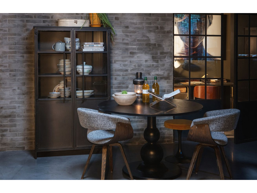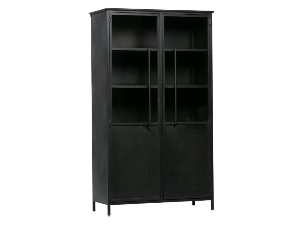Černá kovová výstavní skříň Merrick je díky své kovové konstrukci velmi odolná a její matný vzhled působí moderně. Holandský styl podtrhují dveře z černého kovu s tvrzeným sklem a robustními madly. Částečně uzavřená část skříně skrývá čtyři police, které se rozpínají po celé šířce skříně, díky čemuž získáte prostorné úložiště pro váš inventář. Maximální nosnost jedné police je 20 kg. Vzhledem ke své kovové konstrukci a dlouhé životnosti se hodí do každého interiéru. K dispozici jsou i další barevné varianty.