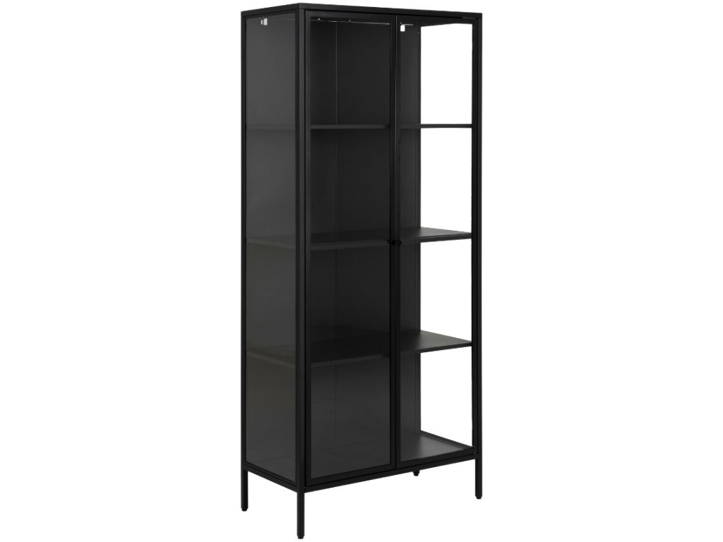 Vitrína Renna vnese industriální prvek do vašeho interiéru. Je černá, celokovová, matná, má elegantní linie, prosklená dvířka a tři poličky. Zajisté oceníte výrazný úložný prostor, který tato vitrína má.