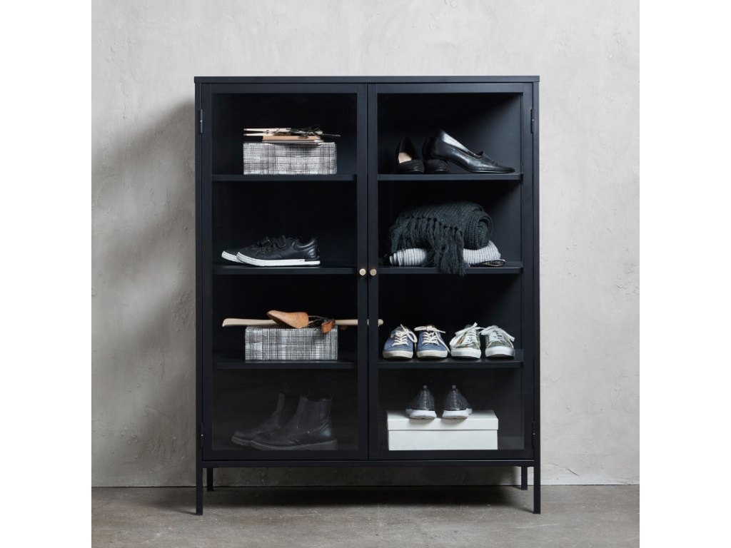 Jednoduchost a čistota designu vitríny Carmel od značky Unique Furniture nadchne nejednoho obdivovatele moderního minimalismu. Podnož i rám vitríny je vyrobený z černě lakované oceli, která zajišťuje dlouhou životnost a také snadnou údržbu. Za dvěma prosklenými dveřmi s drobnými zlatými úchytkami najdete čtyři prostorné police, na kterých můžete vystavit oblíbené dekorace, foto rámečky a trofeje. Pokud toužíte po dokonale sjednoceném interiéru, doporučujeme vitrínu doplnit dalšími produkty ze série Carmel.