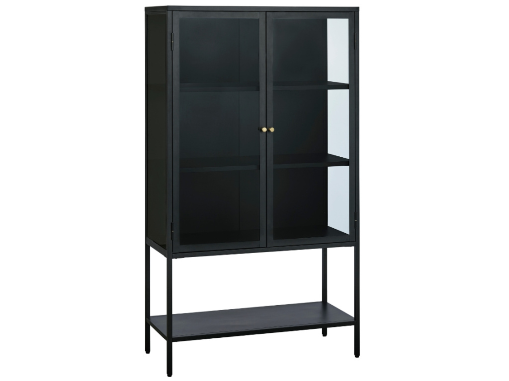 Jednoduchost a čistota designu vitríny Carmel od značky Unique Furniture nadchne nejednoho obdivovatele moderního minimalismu. Podnož i rám vitríny je vyrobený z černě lakované oceli, která zajišťuje dlouhou životnost a také snadnou údržbu. Za dvěma prosklenými dveřmi s drobnými zlatými úchytkami najdete čtyři prostorné police, na kterých můžete vystavit oblíbené dekorace, foto rámečky a trofeje. Podnož je navíc obohacena o další prostornou odkládací polici. Pokud toužíte po dokonale sjednoceném interiéru, doporučujeme vitrínu doplnit dalšími produkty ze série Carmel.