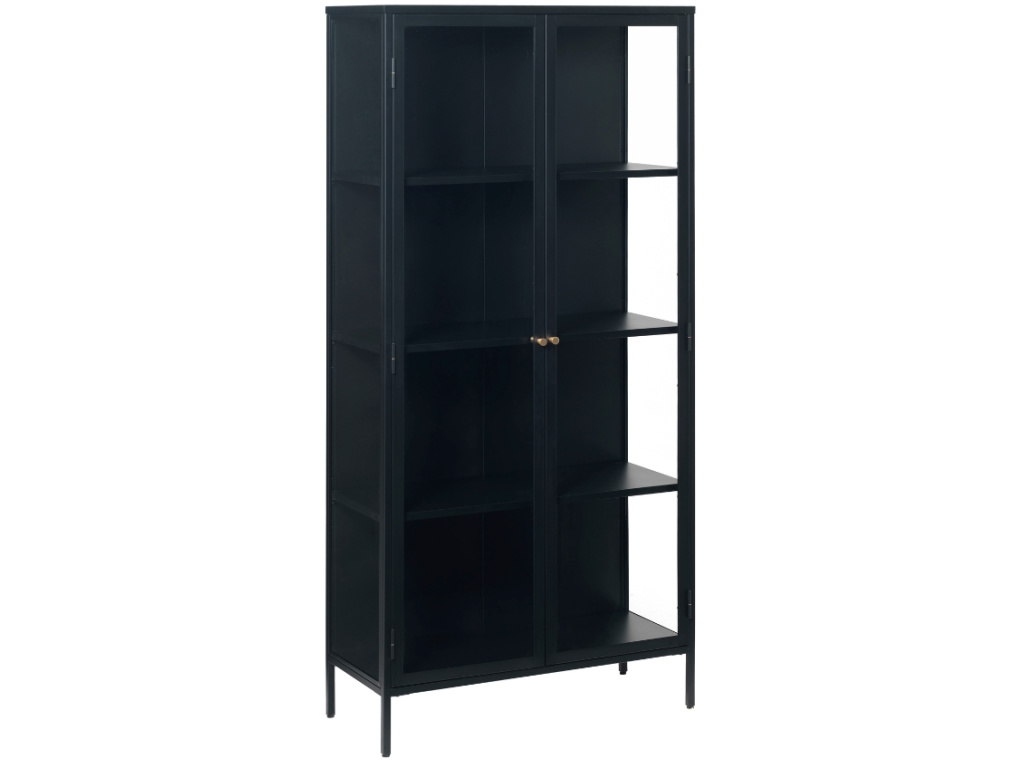 Jednoduchost a čistota designu vitríny Carmel od značky Unique Furniture nadchne nejednoho obdivovatele moderního minimalismu. Podnož i rám vitríny je vyrobený z černě lakované oceli, která zajišťuje dlouhou životnost a také snadnou údržbu. Za dvěma prosklenými dveřmi s drobnými zlatými úchytkami najdete čtyři prostorné police, na kterých můžete vystavit oblíbené dekorace, foto rámečky a trofeje. Pokud toužíte po dokonale sjednoceném interiéru, doporučujeme vitrínu doplnit dalšími produkty ze série Carmel.