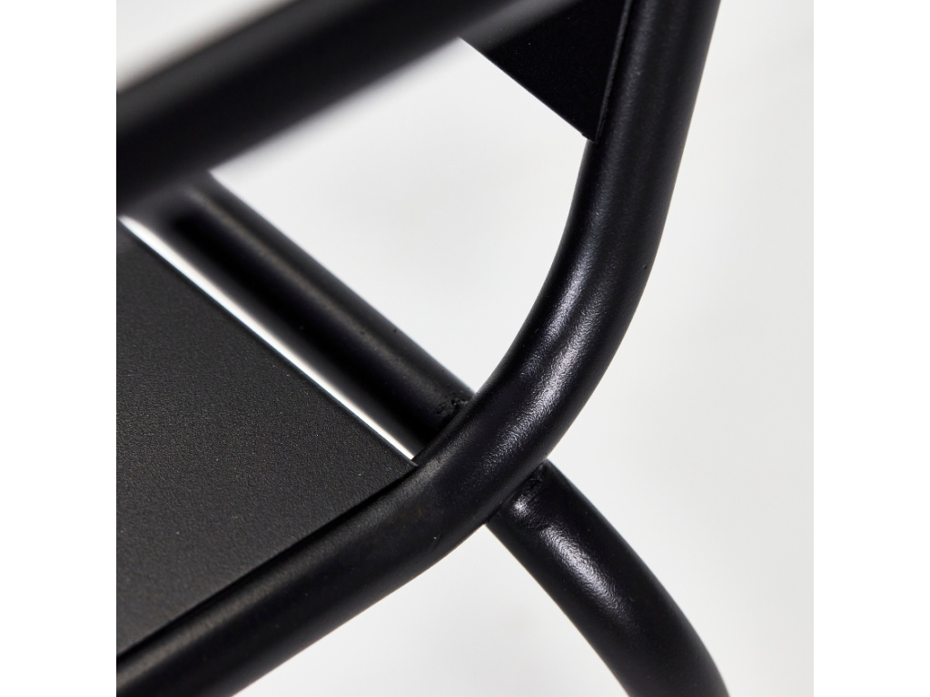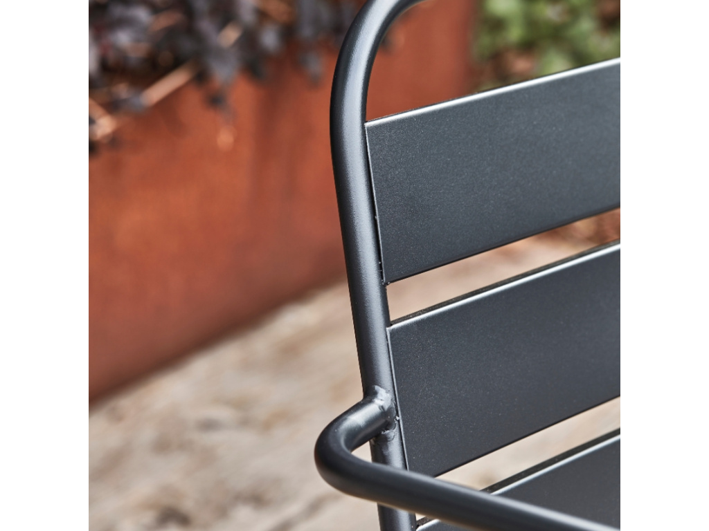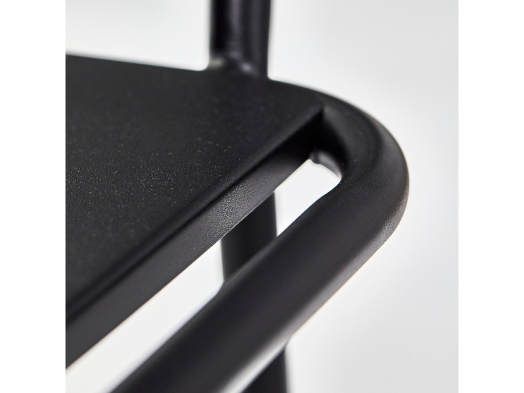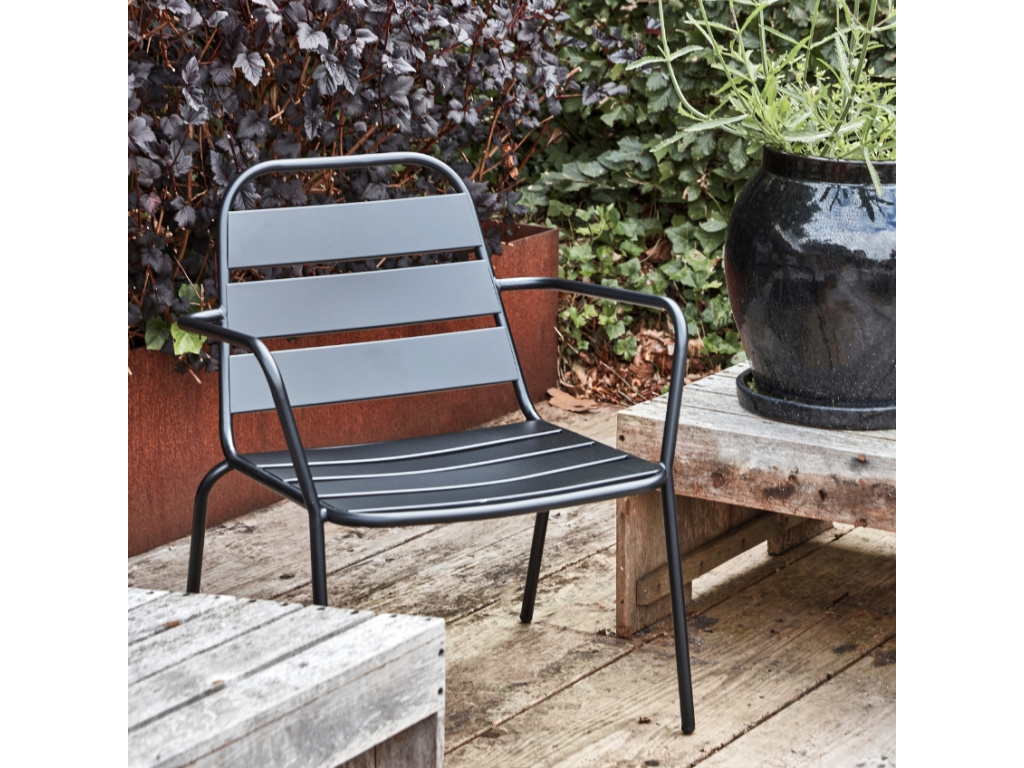 Stylová zahradní židle Helo od značky House Doctor je inspirována vkusným a subtilním skandinávským designem. Její elegantní zaoblené linie, hladký povrch v matně černém laku a pohodlné područky utváří nadčasovou židli, která se navíc velice snadno udržuje a je stohovatelná.