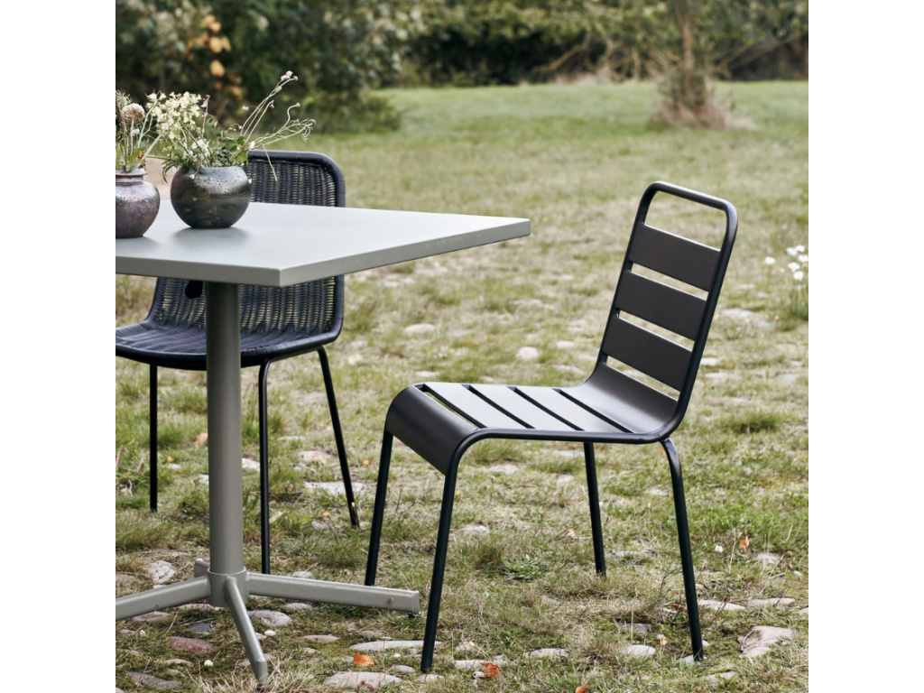 Stylová zahradní židle Helo od značky House Doctor je inspirována vkusným a subtilním skandinávským designem. Její elegantní zaoblené linie a hladký povrch v matně černém laku utváří nadčasovou židli, která se navíc velice snadno udržuje a je stohovatelná.