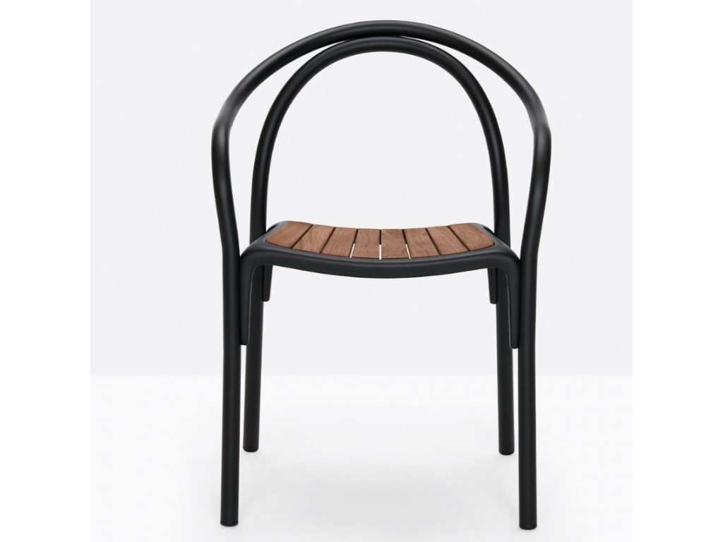Stylová zahradní židle Pedrali Soul je inovativní a originální židle, schopná vyjádřit myšlenku moderní ekologie. Hliníková konstrukce v černé barvě svírá ergonomické sedadlo z teakových lamel. Minimalistická plynulá silueta je zdůrazněna kovovým rámem, který zajišťuje stabilitu a odolnost i v exteriérech. Dřevo lehce kontrastuje s kovem a dodává židli na originalitě a osobitém designu. Židle se skvěle hodí na terasu, zahradu či dalšího exteriéru.