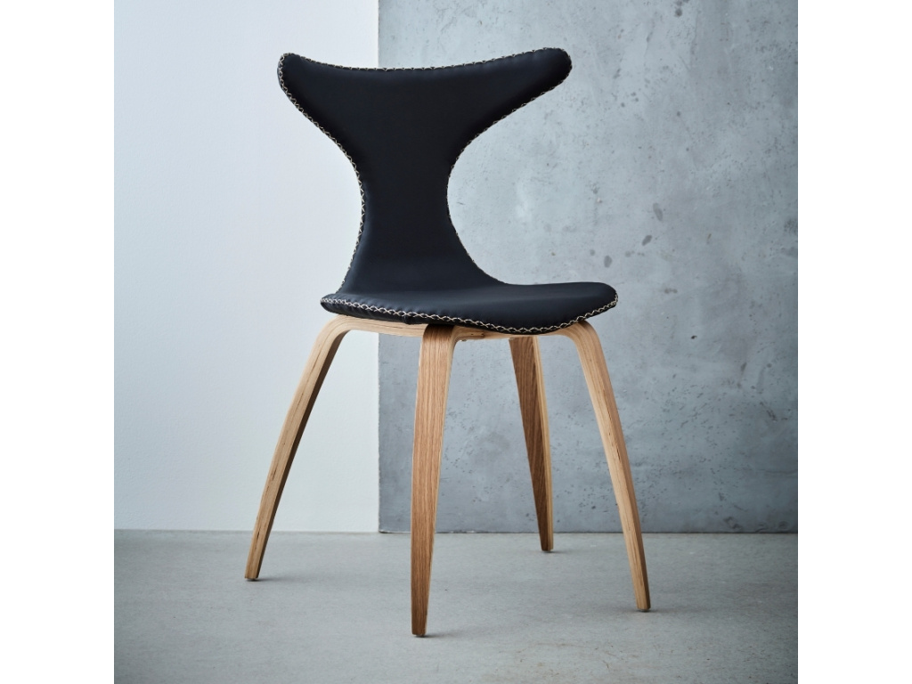 Designová jídelní židle DAN-FORM Dolphin oslní svým jedinečným vzhledem. Komfortní sedák z pravé kůže v černé barvě společně s podnoží z dubového dřeva vytváří skvělé spojení. Židle bude vynikat v každé jídelně či restauraci.