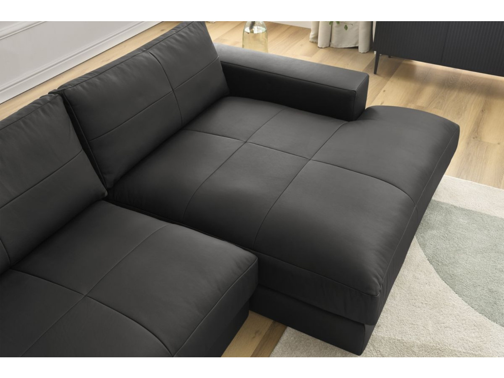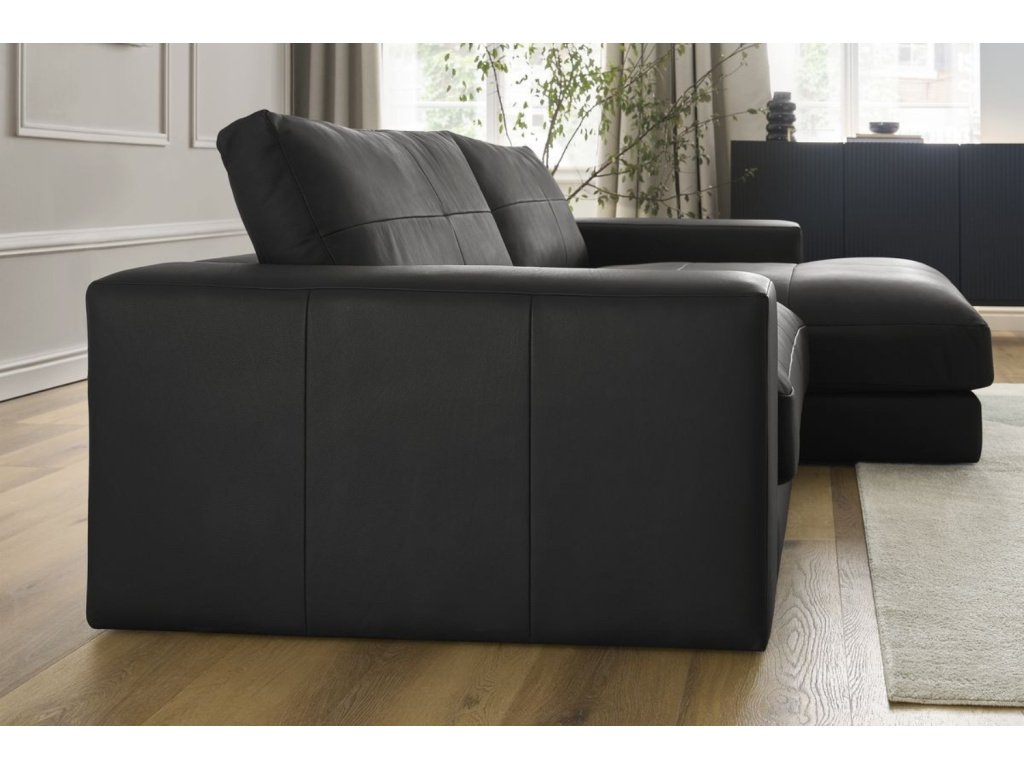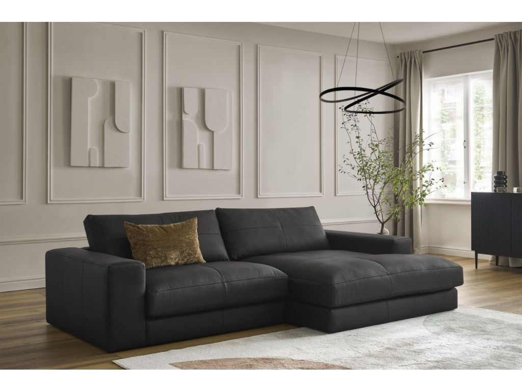 NakupovatČerná kožená rohová pohovka Leonard 274 cm, pravá