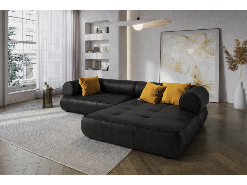 NakupovatČerná kožená rohová pohovka Lily 261 cm, pravá