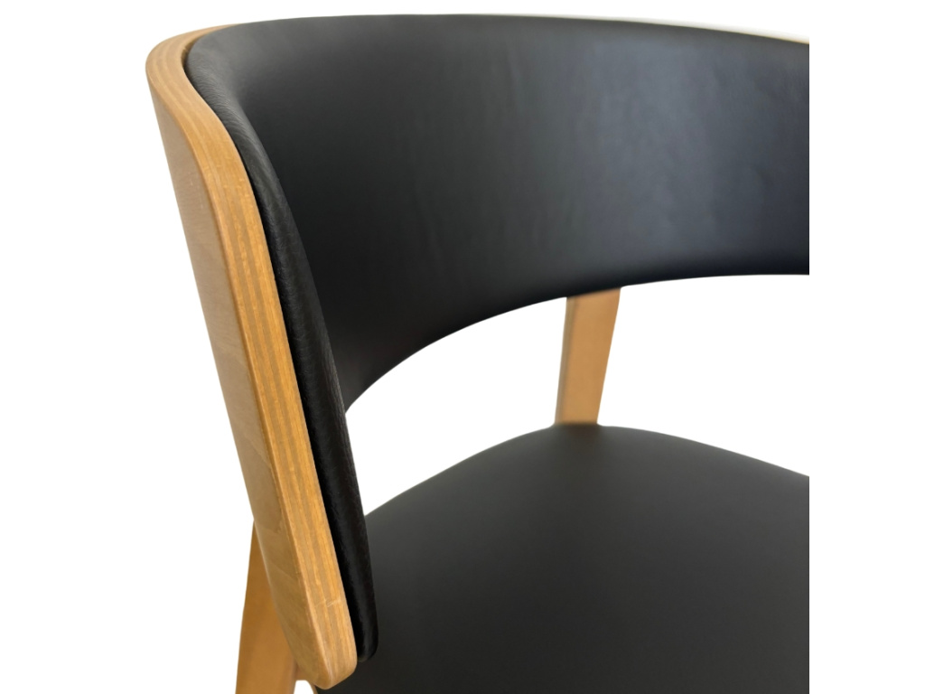 Dubová barová židle NORA se pyšní čalouněním z kvalitní ekokůže černé barvy. O pohodlné posezení se postará prostorné čalouněné opěradlo, společně s opěrkami na nohy – jsou čtyři a každá z nich je v jiné výšce, což představuje zajímavý detail. Přivítejte tuto stylovou barovku u vašeho kuchyňského ostrůvku nebo barového stolu – přinese s sebou nádech elegance a luxusu.