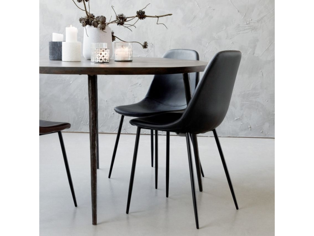 Jídelní židle Found od dánské značky House Doctor vnese do jakékoliv jídelny či komerčních prostor dávku elegance a stylu. Ocelová podnož a čalounění z černé koženky udávají židli nadčasovost a univerzální využití, pohodlný sedák navíc zajistí maximální komfort při sezení. Při úklidu jistě oceníte možnost jednoduchého čištění pouze vlhkým hadříkem. Židli Found snadno zkombinujete s různými materiály i styly nábytku.
