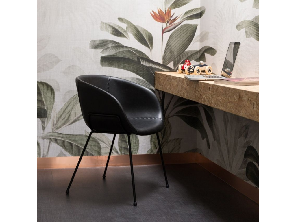 Moderní designová jídelní židle ZUIVER FESTON dodá vaší jídelně prvek elegance. Měkký, široký a velice pohodlný sedák z černé ekokůže je vsazen do kvalitní kovové podnože v černém provedení.