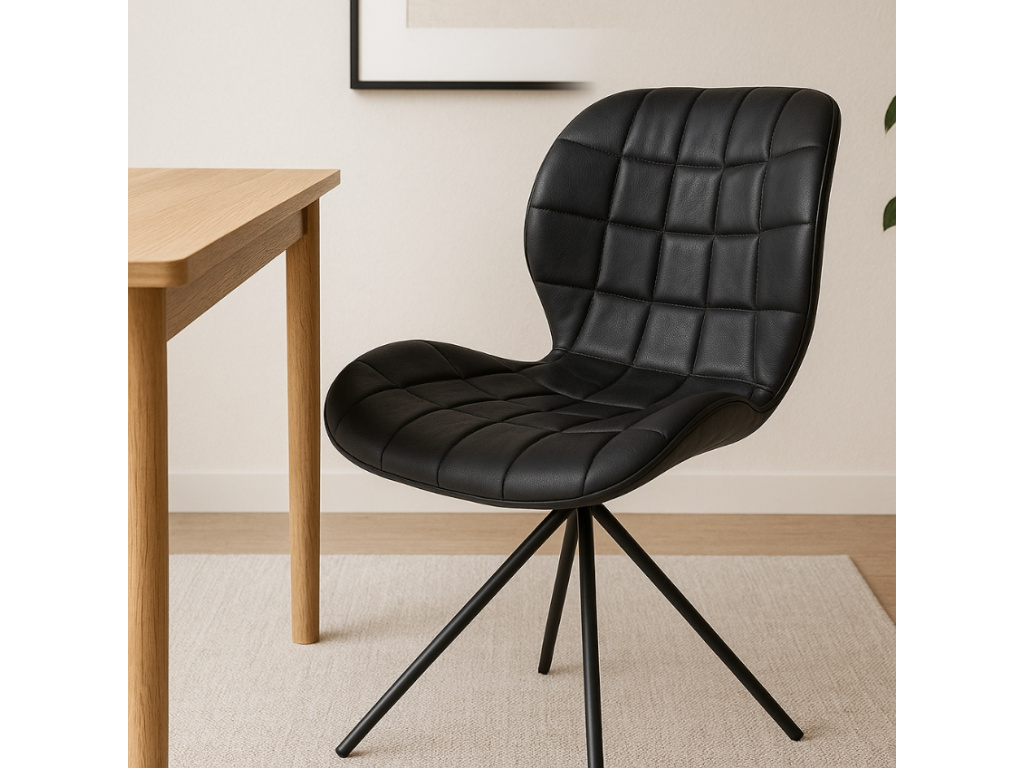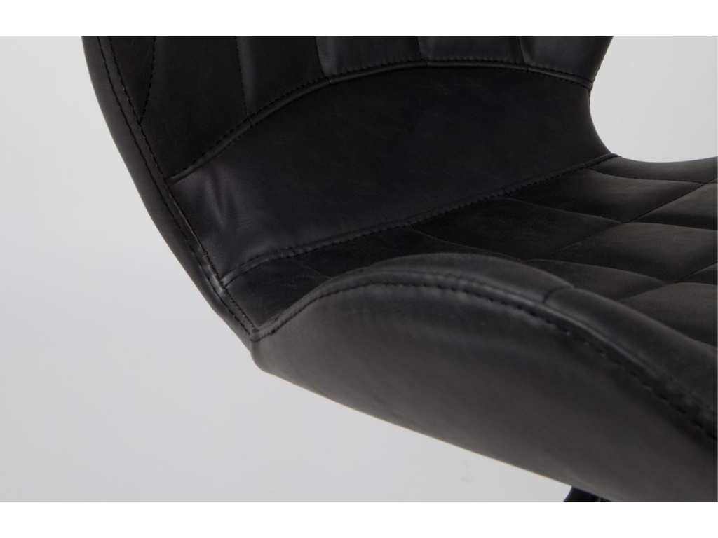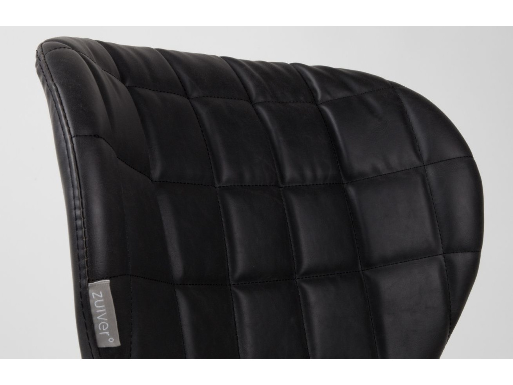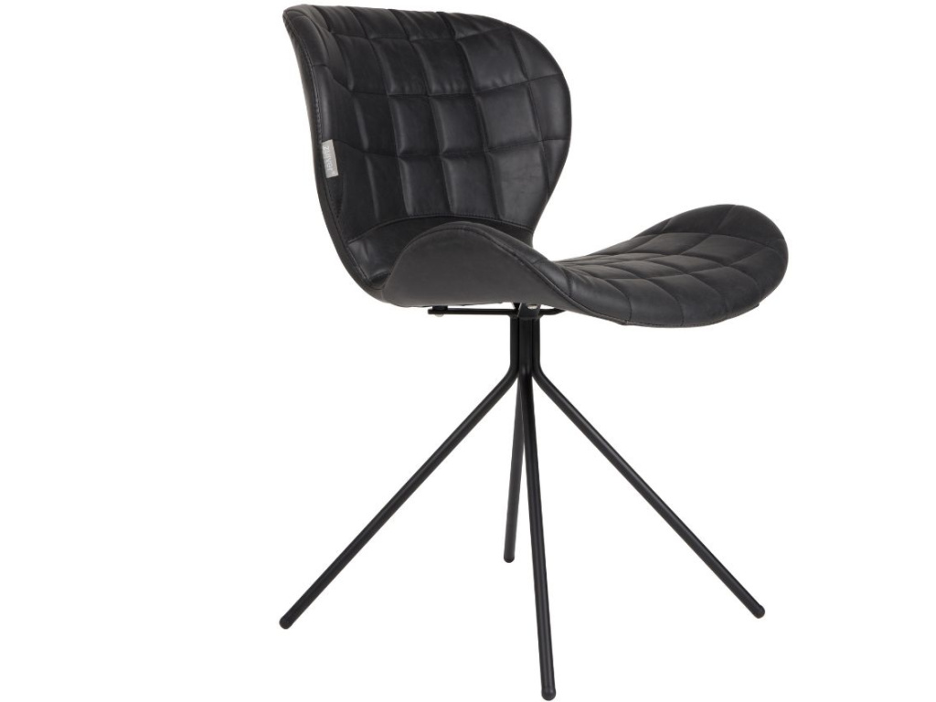 Elegantní vintage designová jídelní židle ZUIVER OMG LL. Základnu sedáku z umělé kůže v černé barvě tvoří překližka pokryta tenkou vrstvou pěny, díky které si budete moci vychutnat úžasné pohodlí, a to beze strachu pádu, které Vám zaručí pevná ocelová podnož v elegantním černém provedení.