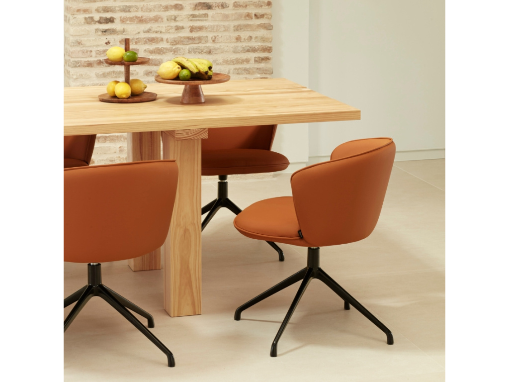 Vybavte zasedací místnost stylovými a pohodlnými konferenčními židlemi Add od značky Teulat. Ergonomické opěradlo je připraveno přizpůsobit se přirozenému zakřivení vašeho těla. Židle je čalouněná kvalitní ekokůží a doplněna elegantní černě lakovanou podnoží, která poskytuje židli perfektní stabilitu. Oceníte také široký prostor na sezení a praktické otočné sedadlo.