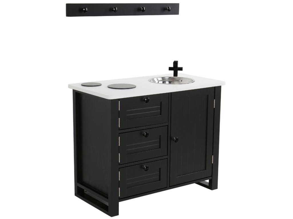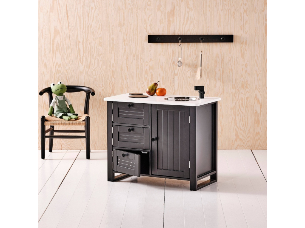 Kouzlo dětského světa často začíná u nápodoby toho dospěláckého. Kuchyňka LA COCINA je krásný prostor, kde se představivost promění ve velká dobrodružství. Elegantní a přitom minimalistická, navržená s láskou k detailu – v barvách, které ladí s vaším domovem, a s prvky, které připomínají opravdovou kuchyni. Děti si tu mohou uvařit polévku „jako od maminky“, péct koláče pro plyšové kamarády nebo jen tak přerovnávat hrníčky do polic. Vysoká tak akorát, s nerezovým dřezem, varnými zónami a úložnými skříňkami, které skutečně fungují – kuchyňka podporuje samostatnost, fantazii a hru, která je přirozená, opravdová a plná radosti. Díky pevnému dřevěnému provedení a nadčasovému designu se stane nejen oblíbenou hračkou, ale i krásným doplňkem dětského pokojíčku nebo obýváku. Je to malý svět, který děti berou vážně – a právě proto v něm dokážou být samy sebou!