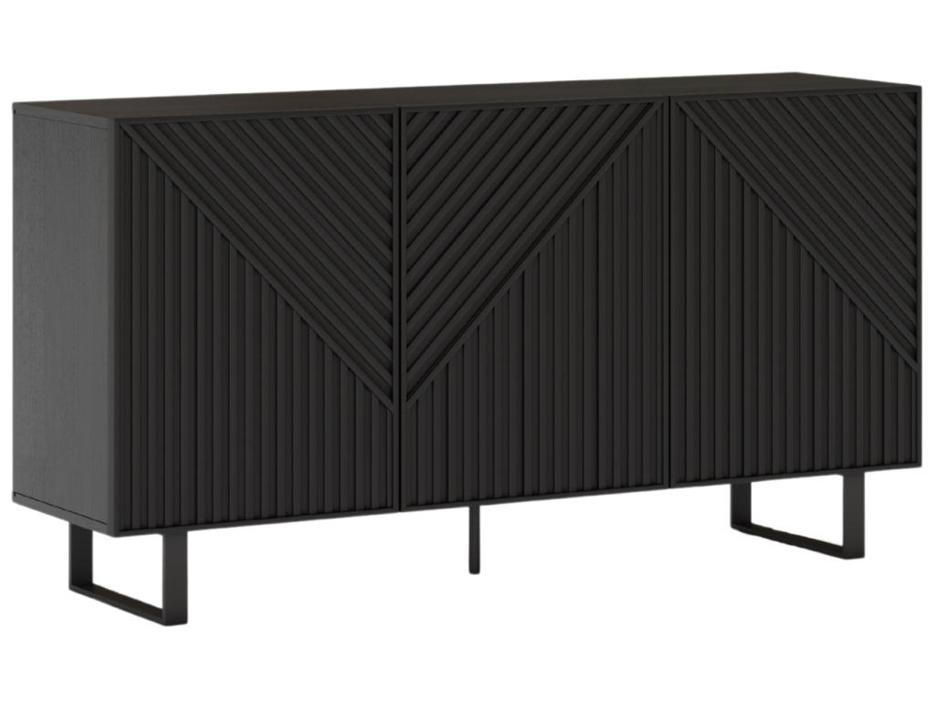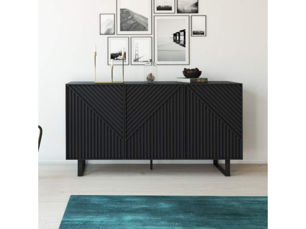Komoda Peta od značky Marckeric je designovým kouskem, který zaujme svými geometricky frézovanými dvířky a celkově výrazným charakterem. Černý lak na MDF deskách v kombinaci s kovovou podnoží vytváří moderní nábytek s industriálním nádechem. Za třemi uzavíratelnými dvířky se ukrývají police, které nabídnou dostatek prostoru pro elegantní uschování všeho, co nemá být vidět. V kolekci Peta najdete dvě varianty komod a také TV stolek, které společně vytvoří charakter nápaditého a výrazného interiéru.