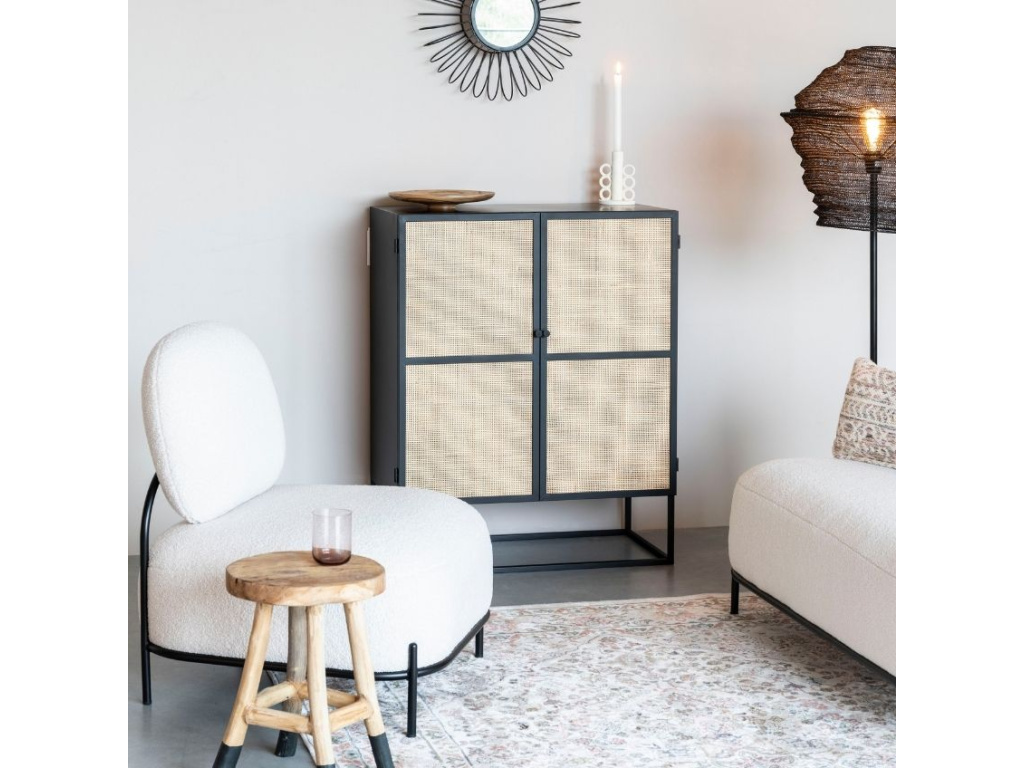 Pokud máte v interiéru rádi přírodní materiály, pak se vám komoda GUUJI značky WHITE LABEL LIVING jistě zalíbí - její dveře mají výplň z přírodního ratanu. Korpus komody je tvořen lakovanými MDF deskami a doplňuje ho vyšší štíhlá podnož z lakovaného kovu. Dveře komody se zavírají pomocí magnetů a najdete za nimi tři prostorné police. Série GUUJI nabízí více designově sladěných produktů, které budou pohromadě vypadat skvěle.