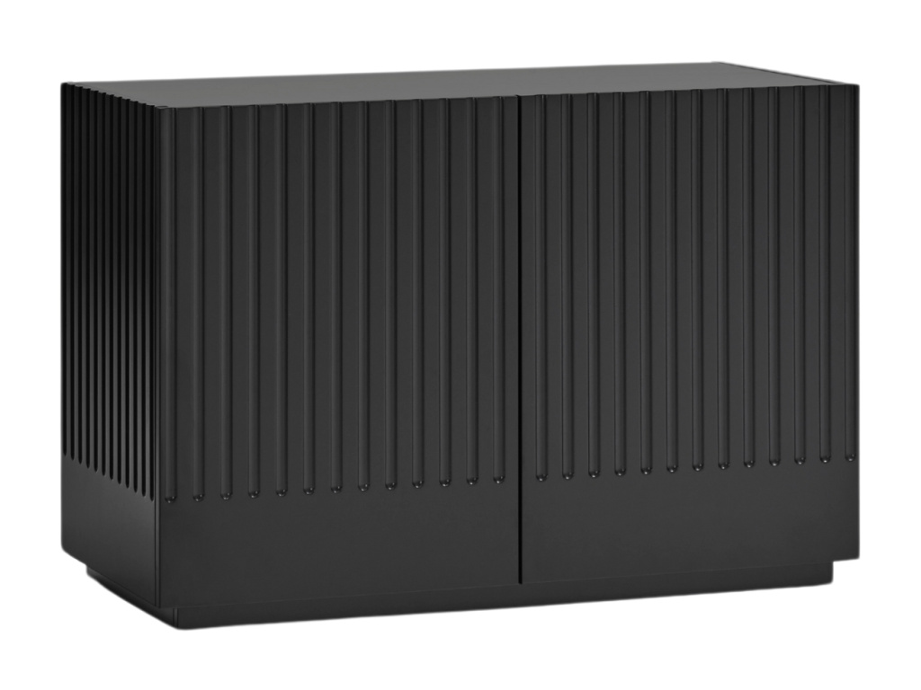 Minimalistická komoda Doric od španělské značky Teulat elegantně skryje všechny vaše poklady. Díky nadčasovému designu je ideálním doplňkem každého moderního interiéru. Je perfektní volbou do ložnice, předsíně i obývacího pokoje. Zajímavým designovým prvkem je vzorek na předních dvířkách a po stranách, který nábytku dodává na osobitosti a stylu. Komoda je vyrobena z lakovaného MDF v elegantní černé barvě. Disponuje praktickým úložným prostorem ve formě čtyř uzavřených polic a dvou zásuvek.
