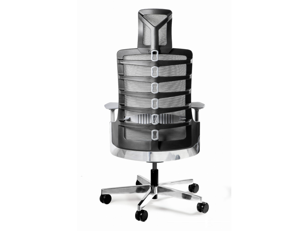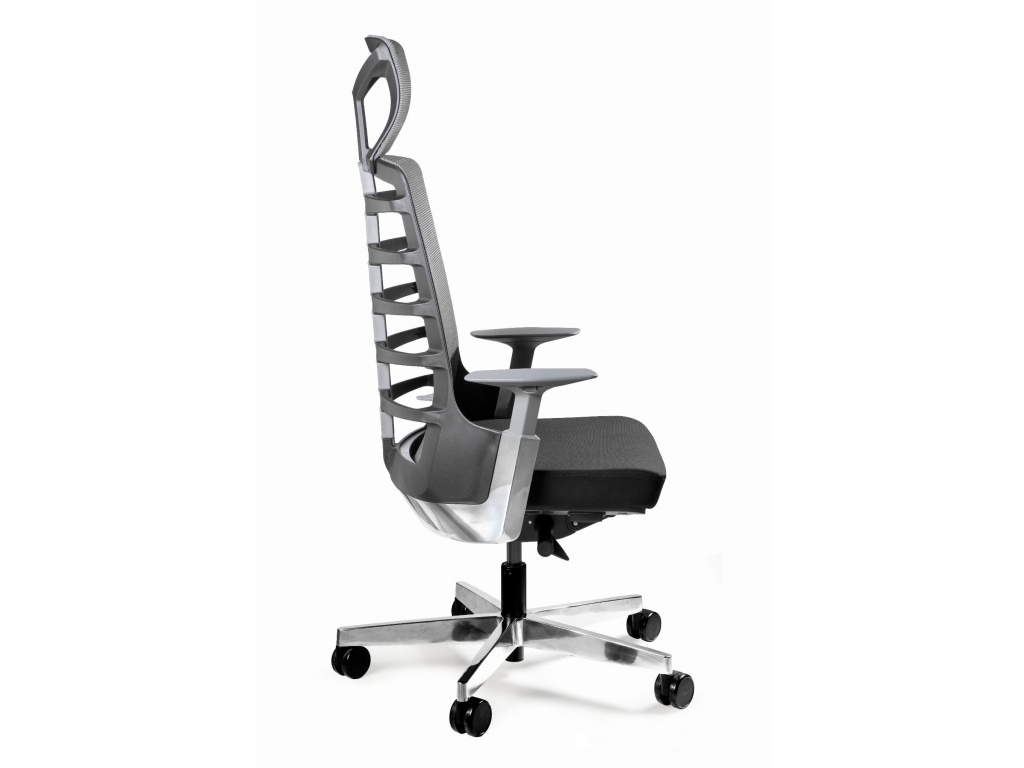 Kancelářská židle Spin zaujme nejen kvalitním zpracováním, ale také unikátním a futuristickým vzhledem. Látkový sedák nabízen v několika barevných provedeních je skvěle sesynchronizován s tmavě šedým opěradlem a opěrkou hlavy z vysoce kvalitní síťované látky. Skvělý pocit ze sezení vám dopřejí plastové područky s měkkým čalouněním a nastavitelným opěradlem pro bederní obratle.