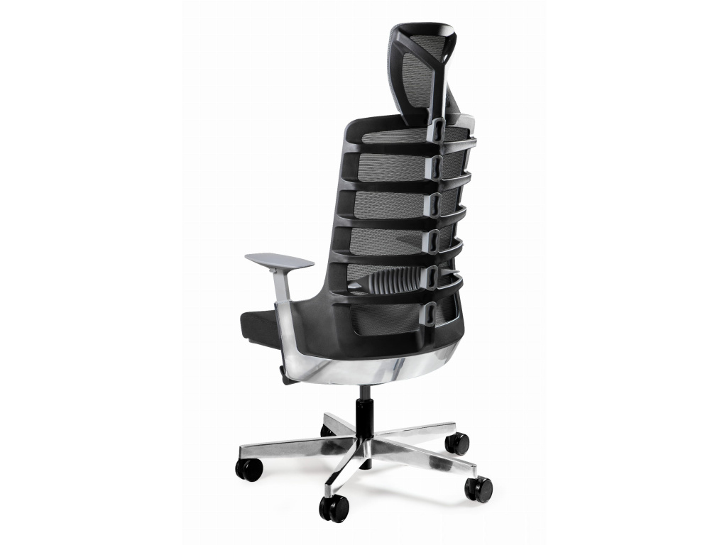 Kancelářská židle Spin zaujme nejen kvalitním zpracováním, ale také unikátním a futuristickým vzhledem. Látkový sedák nabízen v několika barevných provedeních je skvěle sesynchronizován s tmavě šedým opěradlem a opěrkou hlavy z vysoce kvalitní síťované látky. Skvělý pocit ze sezení vám dopřejí plastové područky s měkkým čalouněním a nastavitelným opěradlem pro bederní obratle.