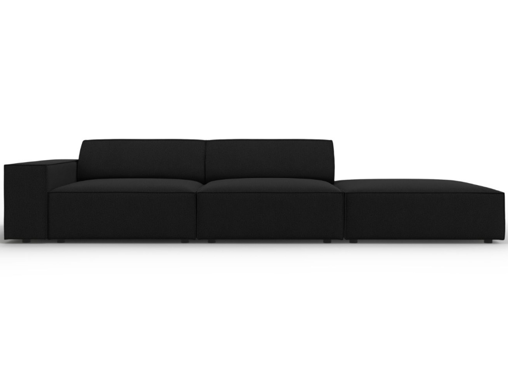 Prostorná modulární trojmístná pohovka Jodie od značky Micadoni zaujme svou krásnou siluetou. Elegantní strukturovaná tkanina, která se značí viditelnou vazbou vláken bez lesku. Látka prošla testem na cigarety, díky tomu je pohovka vhodná i do komerčních prostor. Její polstrovaný tvar vám zaručí plnohodnotný odpočinek, zatímco hluboký sedák umožní dokonalou relaxaci. Opřít se můžete také o tvarované opěráky a široké područky, které vybízejí k nespoutanému lenošení. Nízká podnož ladí s útulnou siluetou nábytku. Velký výběr modulů vám umožní vytvořit si kombinace, které budou nejlépe vyhovovat vašemu obývacímu pokoji v minimalistickém či skandinávském stylu.