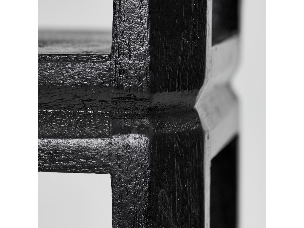 Oživte váš domov s nástěnnou policí Mono z černě lakovaného mangového dřeva. Její mřížkové rozčlenění přinese vašemu interiéru čisté linie, moderní eleganci a zároveň maximální funkčnost bez zbytečného rušení prostoru. Je ideální pro vystavení vašich oblíbených dekorací a knih, přičemž šetří místo díky zavěšení. Polici můžete použít samostatně nebo kombinovat více kusů pro výraznější efekt. Ve stejném designu si můžete zakoupit také elegantní toaletní stolek Mono, který polici dokonale doplní.