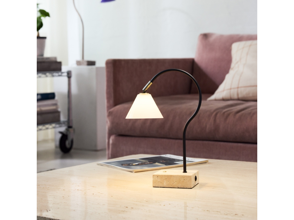 Stolní lampa Question od značky Halo Design zaujme nadčasovým designem, který citlivě propojuje ušlechtilé materiály s jemnou estetikou. Podstava z travertinu v kombinaci se sklem a kovem dodává lampě přirozený luxus a vizuální lehkost. Díky tříkrokovému stmívači lze snadno přizpůsobit intenzitu světla aktuální atmosféře, ať už ji využijete na psacím stole, nočním stolku nebo jako doplňkové osvětlení v obývacím pokoji. Jednoduché linie a vyvážené proporce z ní činí výrazný, ale přitom harmonický prvek interiéru. Question se díky kombinaci elegantních materiálů a praktických funkcí přirozeně začlení do interiéru a nabídne komfortní osvětlení pro každodenní použití.