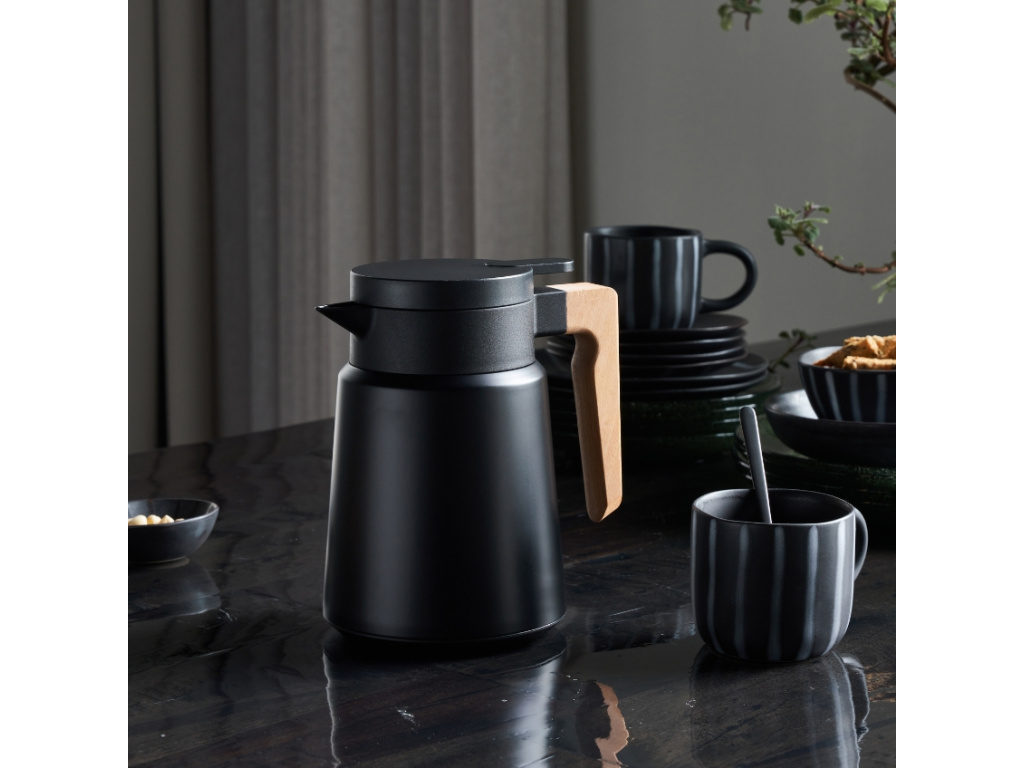 S praktickou termokonvicí Cole od značky House Doctor vám už káva ani čaj nikdy nevychladnou. Je navržena v duchu funkčního a nadčasového designu, kde se perfektně doplňuje matně černá nerezová ocel a hnědá rukojeť z bukového dřeva. Konvice Cole udrží 95 °C až 6 hodin, na 75 °C klesne po dobu dalších 18 hodin. Pojme až 1 litr, což je tak akorát na teplý nápoj e snídani nebo na odpolední kávu s přáteli. V naší nabídce je k dostání také v další barvě a velikosti.