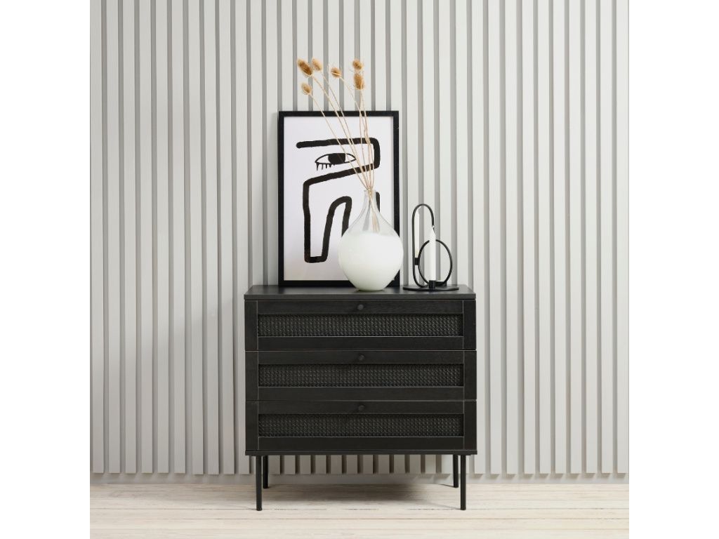 Dostatečný úložný prostor je nezbytností každé domácnosti a získat jej můžete díky komodě Pensacola od značky Unique Furniture, která nabízí praktický úložný prostor v podobě tří zásuvek. Podnož z černě lakovaného kovu nejen že dodává produktu na eleganci, ale skvěle se hodí pro domácnosti s robotickým vysavačem. Dominantou komody jsou dvířka, která vás zaujmou především výplní z umělého ratanu v černém provedení, který navozuje příjemný kontrast s ostatními materiály. Pokud hledáte neobyčejný kousek do vašeho interiéru, komoda Pensacola vás rozhodně nezklame. V sérii Pensacola najdete více designově sladěných produktů, které se budou v interiéru skvěle doplňovat.