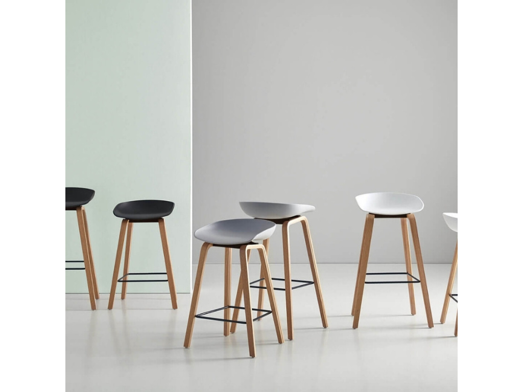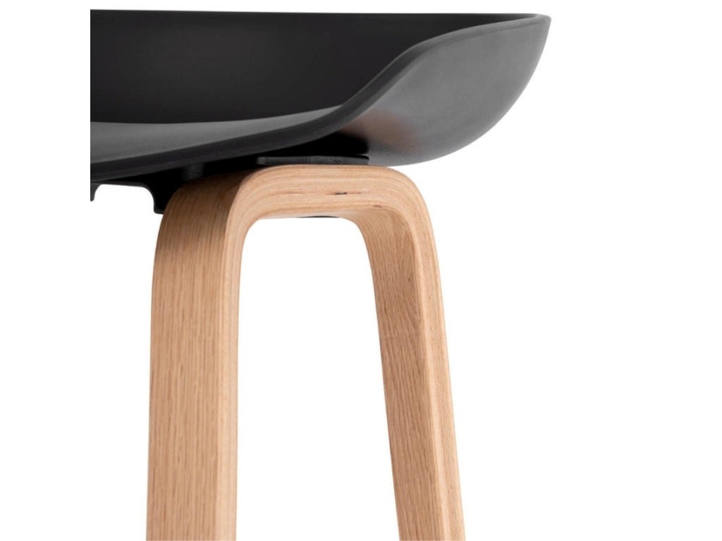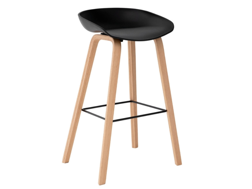 Nadčasová barová židle Ronie úžasně skloubí černou barvu doplněnou o moderní prvek dřeva, který se hodí téměř do jakéhokoliv interiéru. Na první pohled zaujme zajímavě propracovanou dřevěnou podnoží, která je pro dosažení maximálního pohodlí doplněna kovovou opěrkou na chodidla. Sedák je z pevného plastu, takže je velmi snadný na údržbu, což je další plus této minimalistické barové židle.