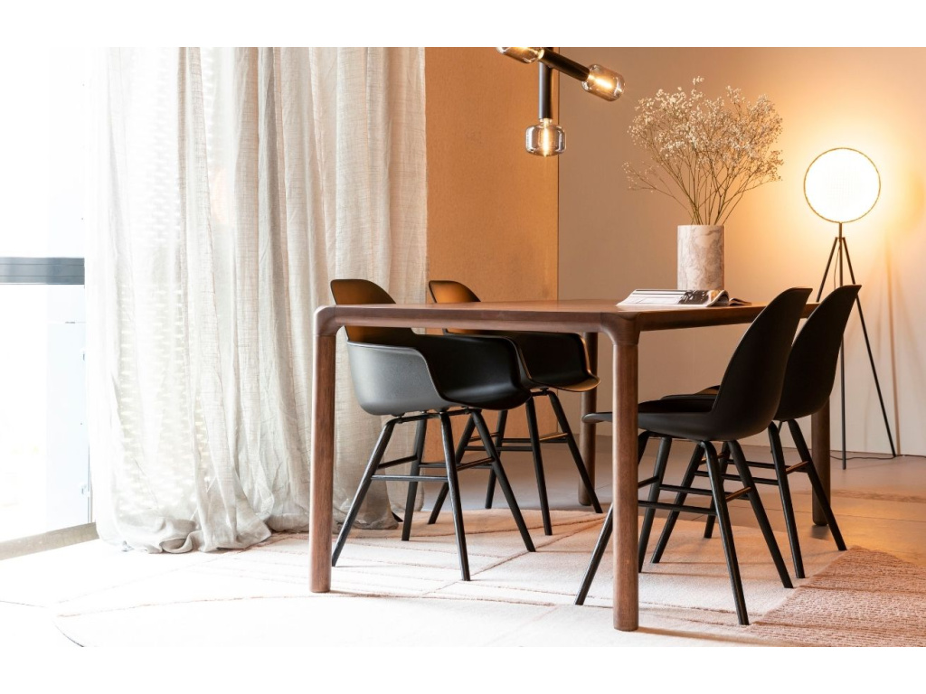 Pohodlná a elegantní jídelní židle ZUIVER ALBERT KUIP v celočerné barvě. Sedák židle z polypropylenu připevněn na pevné podnoži z kvalitního jasanového dřeva pomocí hliníkového rámu. Díky tomu poskytuje židle nosnost až 140 kg.