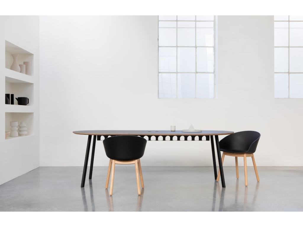 Jídelní židle VOID, navržená Lexem Pottem, představuje atraktivní designový kousek. Byla navržena tak, aby ji šlo snadno zasunout pod každý jídelní stůl – to oceníte hlavně v domácnostech, kde probíhá boj o cenné a metry čtvereční. I přes její kompaktní design vás ohromí svým pohodlím, které je umocněno vyššími područkami. Kombinace černého plastu a přírodně zbarvené dubové podnože dodá vaší jídelně nádech elegance a luxusu, využít ji ale můžete i v pracovně nebo u psacího stolu. Dostupná je ve třech barevných variantách a můžete ji mít také s černou kovovou podnoží.