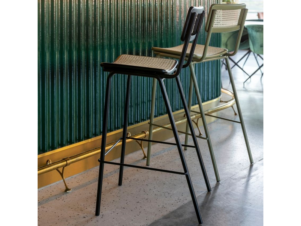 Černá ratanová barová židle Jort od značky Zuiver nadchne každého milovníka retro stylu v kombinaci s moderními prvky. Masivní rám židle z bukového dřeva doplňuje sedák a opěradlo z ratanu. Práškově lakované ocelové nohy v černé barvě jen krásně doplní celý designe židle. Perfektně se hodí k minimalistickému jídelnímu stolu.