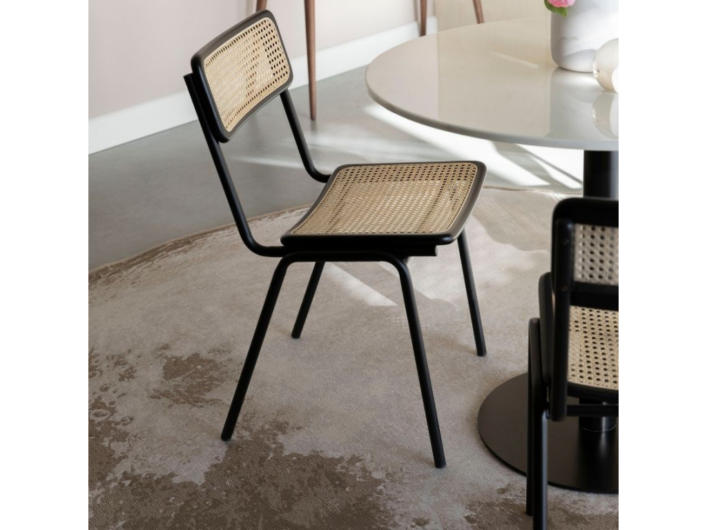 Černá ratanová jídelní židle Jort od značky Zuiver nadchne každého milovníka retro stylu v kombinaci s moderními prvky. Masivní rám židle z bukového dřeva doplňuje sedák a opěradlo z ratanu. Práškově lakované ocelové nohy v černé barvě jen krásně doplní celý designe židle. Perfektně se hodí k minimalistickému jídelnímu stolu.