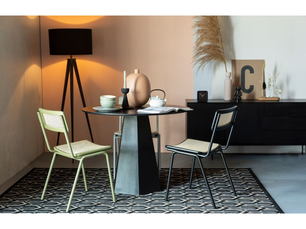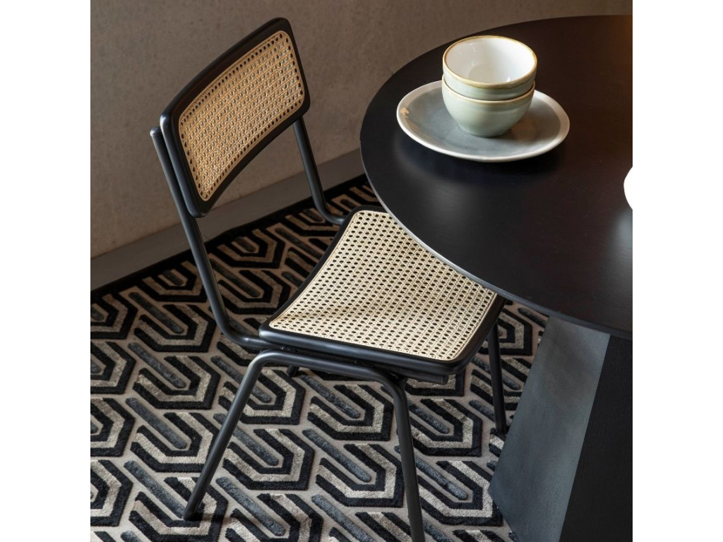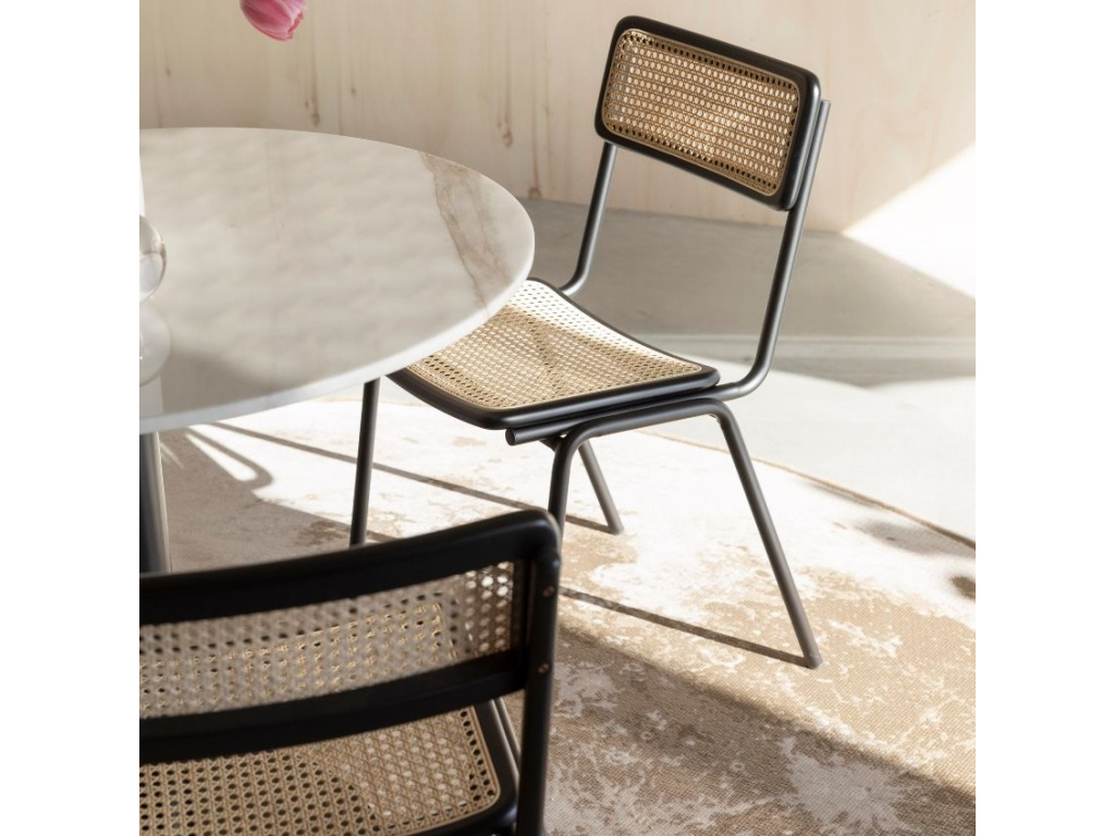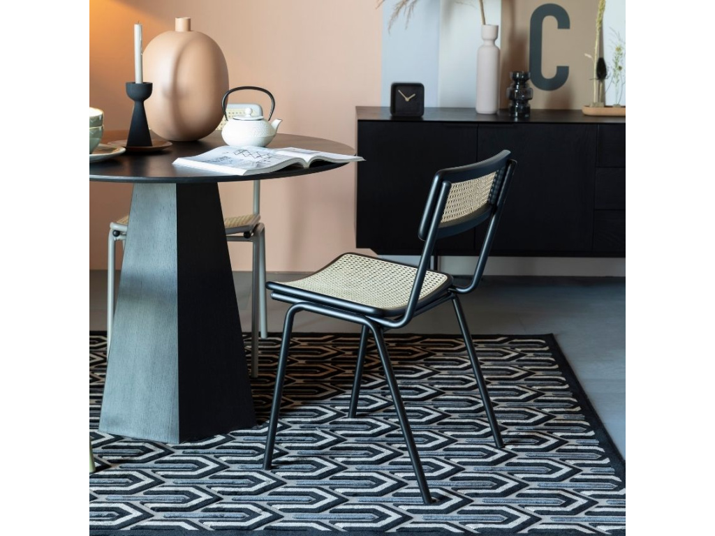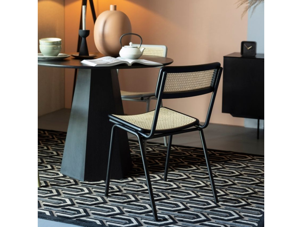 Černá ratanová jídelní židle Jort od značky Zuiver nadchne každého milovníka retro stylu v kombinaci s moderními prvky. Masivní rám židle z bukového dřeva doplňuje sedák a opěradlo z ratanu. Práškově lakované ocelové nohy v černé barvě jen krásně doplní celý designe židle. Perfektně se hodí k minimalistickému jídelnímu stolu.