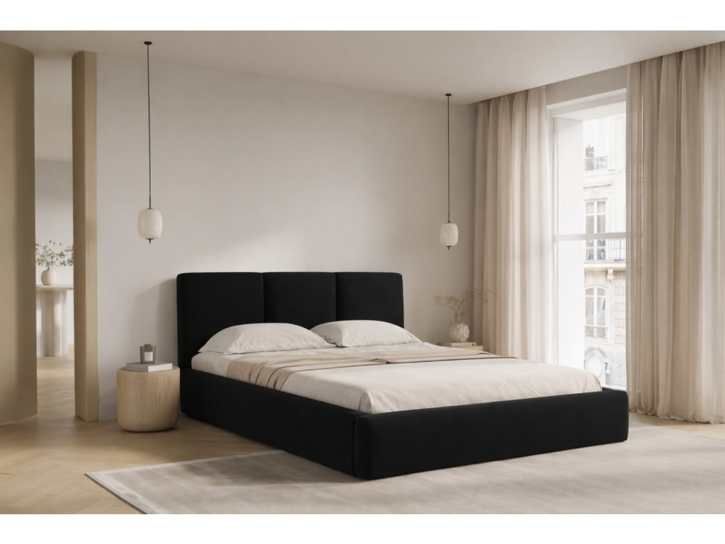 Relaxujte a užívejte si pohodlí ve dvoulůžkové posteli Horizon od značky Windsor & Co. Měkké čelo s elegantním designovým prošíváním zajistí příjemný vzhled postele, a navíc vám poskytne oporu při sledování televize nebo čtení knih a časopisů. Její sametové čalounění v černém odstínu je vyrobeno z tkaniny, která je vysoce odolná proti poškození a zabraňuje pronikání tekutin. Tkanina navíc prošla cigaretovým testem, tudíž je odolná proti doutnání a vznícení. Postel je doplněna úložným prostorem pod oběma lůžky, do kterého můžete vkládat vaše ložní prádlo. Horizon je v nabídce v několika barevných provedení a ve třech standardních rozměrech. Díky tomu si můžete vybrat ideální rozměr do vašeho interiéru.