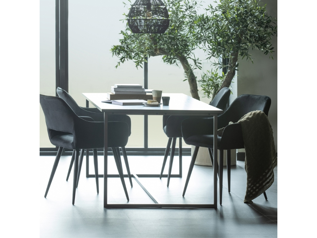 Designová jídelní židle Monky okouzlí svým moderním vzhledem sedáku, který je vyrobený ze sametového materiálu. Celkový design dotváří područky pro větší pohodlí a podnož z černě lakovaného kovu. Tato židle se hodí do každého interiéru. Produktová řada také obsahuje židle v dalších barevných provedení.