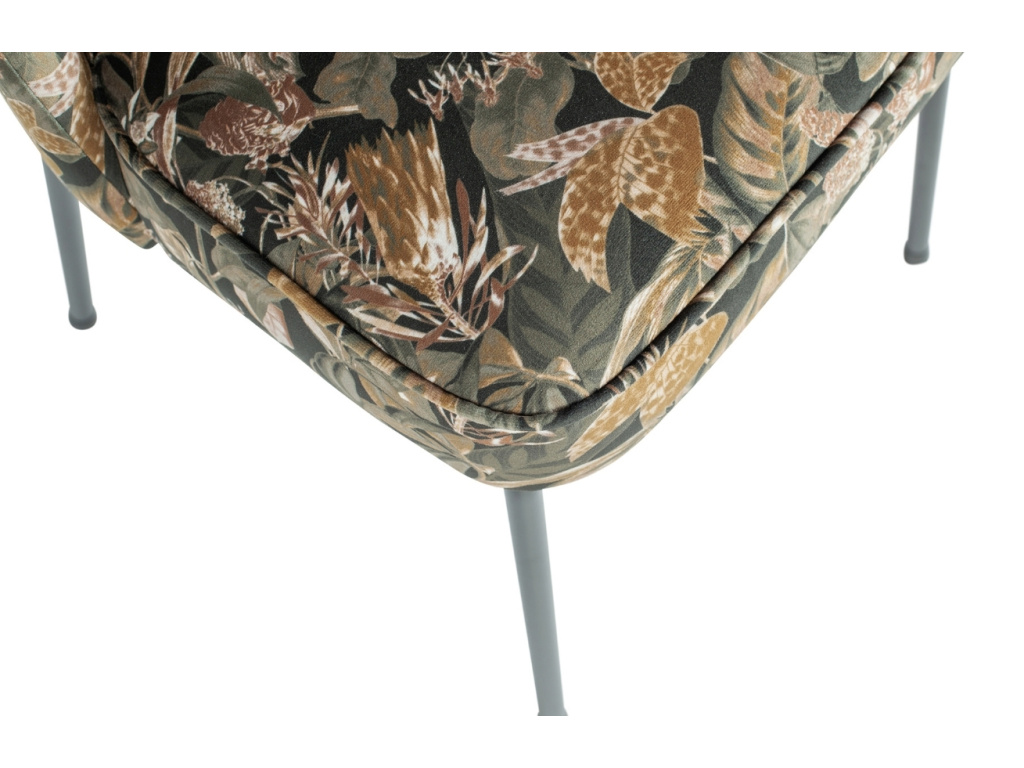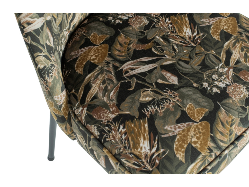 Židle Tergi je působivou židlí v moderním stylu se sametovým čalouněným sedákem černé barvy s bohatým květinovým vzorem a černě lakovanou kovovou podnoží. Kombinace kvalitní potahové látky, která je velmi příjemná na dotek, a stabilní podnože tvoří velmi atraktivní spojení, které zaujme nejen na pohled, ale také svým komfortem. Židle Tergi zútulní váš interiér a dodá mu nadčasový design a osobitou atmosféru.