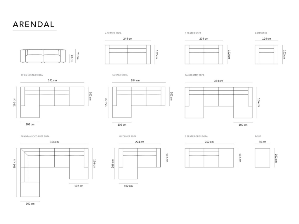 Rozpětí pohovky: | od 251 cm |