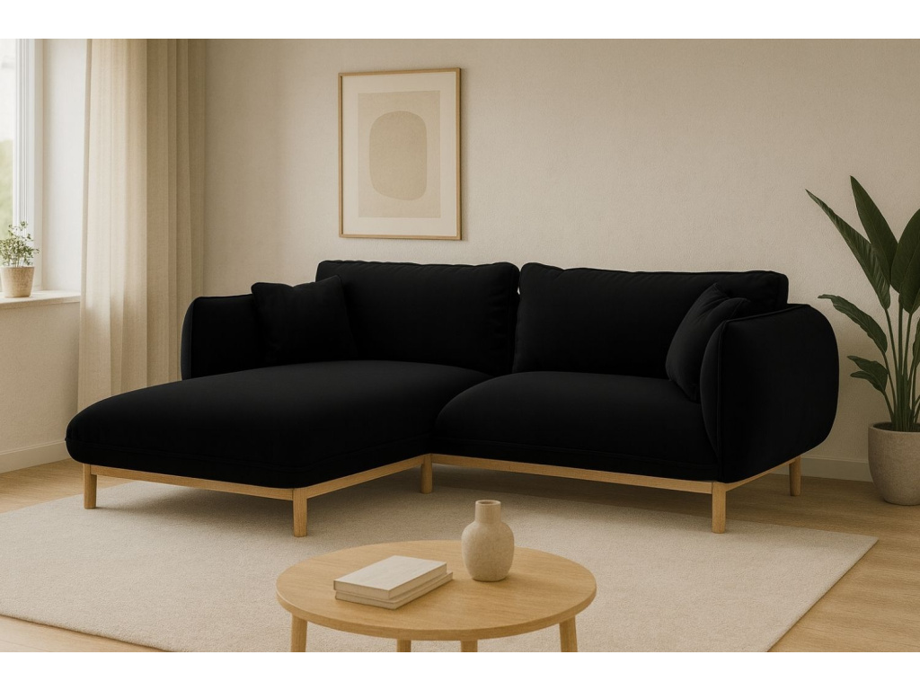 ProhlédnoutČerná sametová rohová pohovka Ada 214 cm, levá
