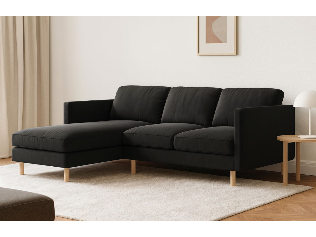 Podívám seČerná sametová rohová pohovka Eden 223 cm, levá