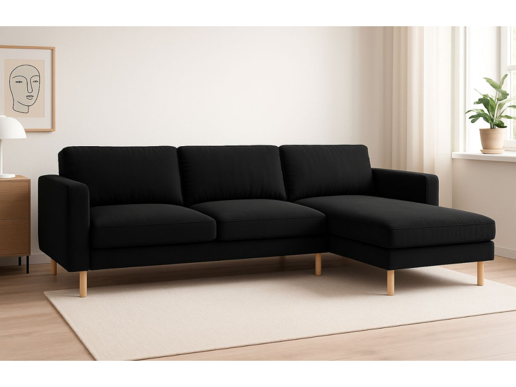 Podívám seČerná sametová rohová pohovka Eden 267 cm, pravá