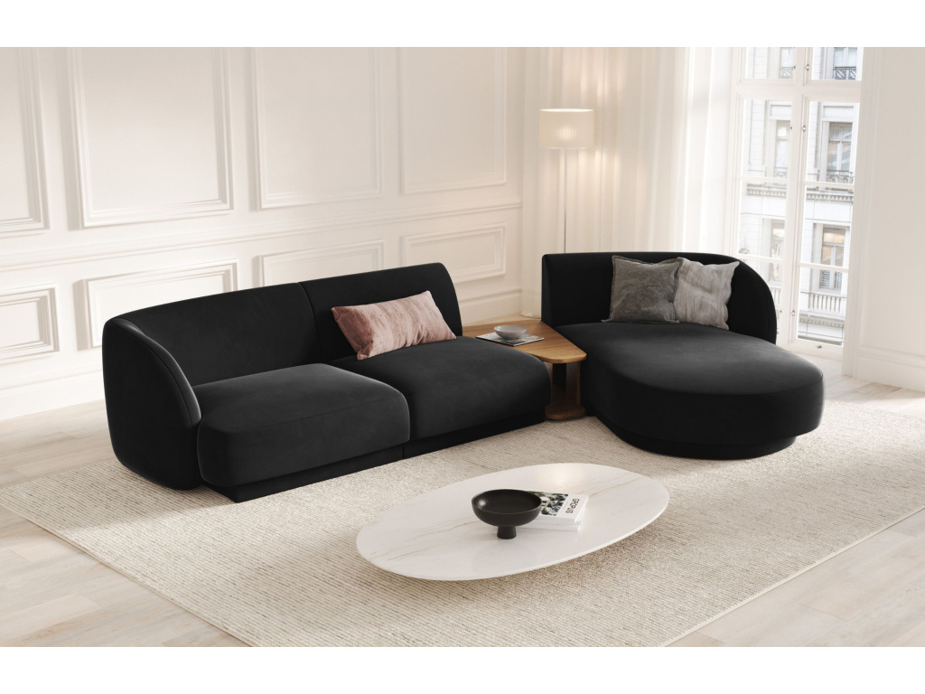 Pětimístnou rohovou pohovku Miley od značky Micadoni si zamilujete! Její elegantně obloukovité opěradlo vás doslova zve k odpočinku, zatímco jemně zapuštěná základna dodává celému kusu vzdušnost a lehkost. Měkký, odolný a na pohled příjemný samet poskytuje nábytku lákavý vzhled, který vnese do místnosti záři a pocit sofistikovanosti. Pohovka je ideální volbou do interiéru v moderním nebo skandinávském stylu. K pohovce je možné přikoupit další produkty z kolekce Miley. Díky tomu si můžete vytvořit sedací soupravu, kterou je vhodné kombinovat se skleněným nebo dřevěným konferenčním stolkem.